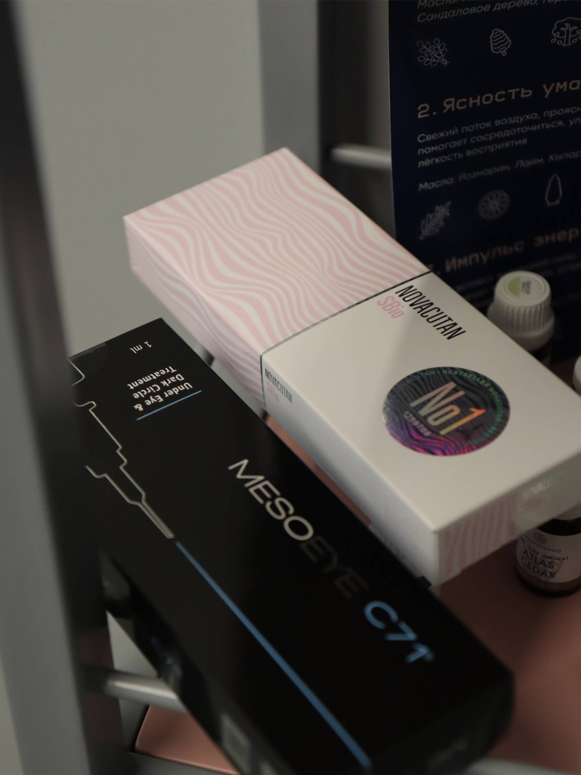 - Novacutan: Защита от агрессивной среды города. Убирает темные круги и возвращает коже способность правильно отражать свет.